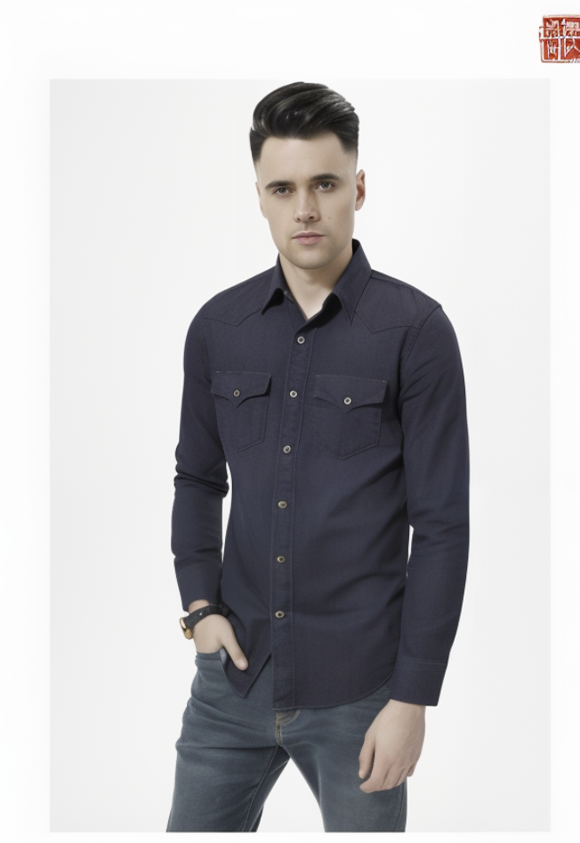 Bespoke Denim Shirt Dark Blue Style No ZGA0020- ZGA0021