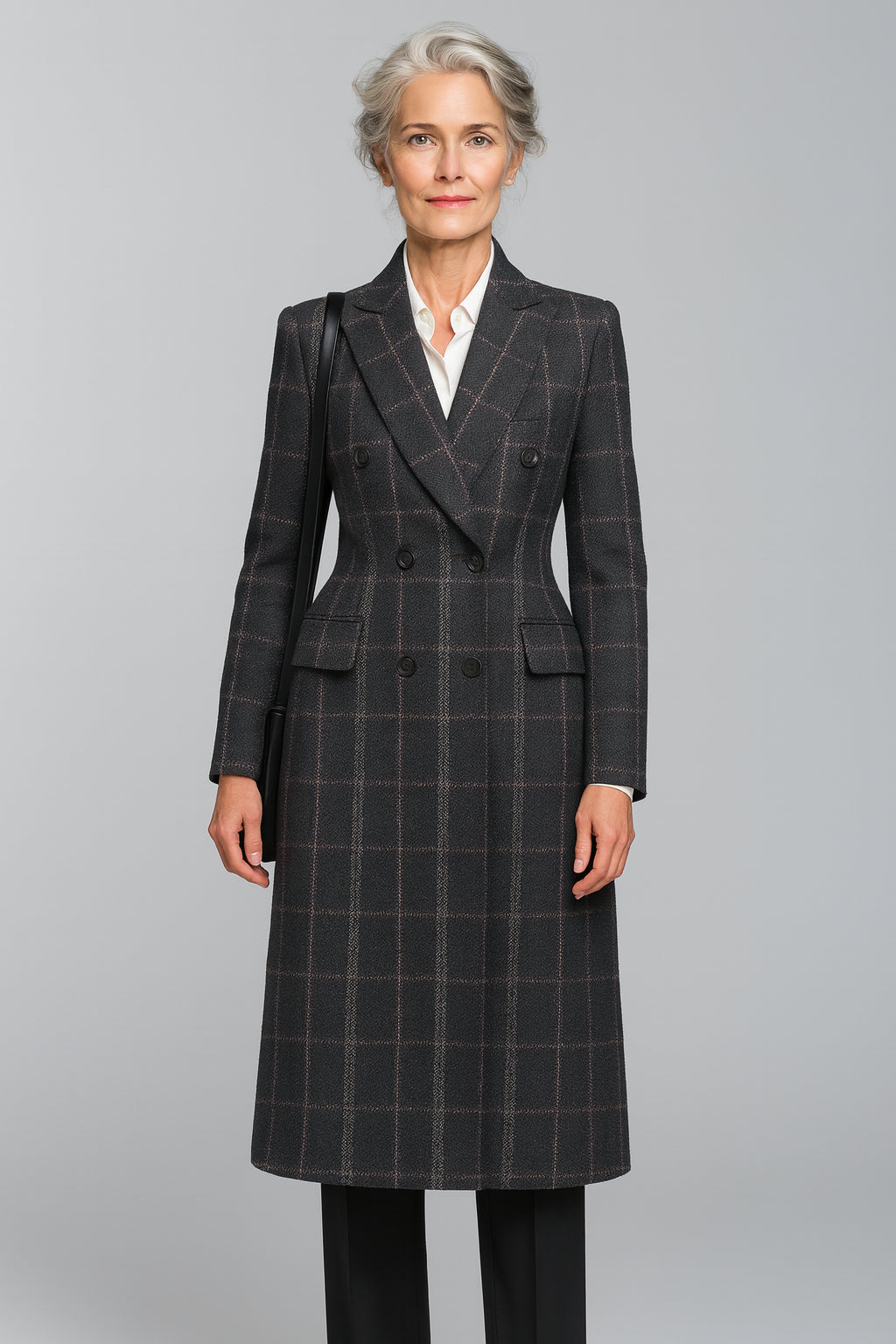 Black/Purple Check Wool / Blend Women's Evening Coat / Style No DBU9091