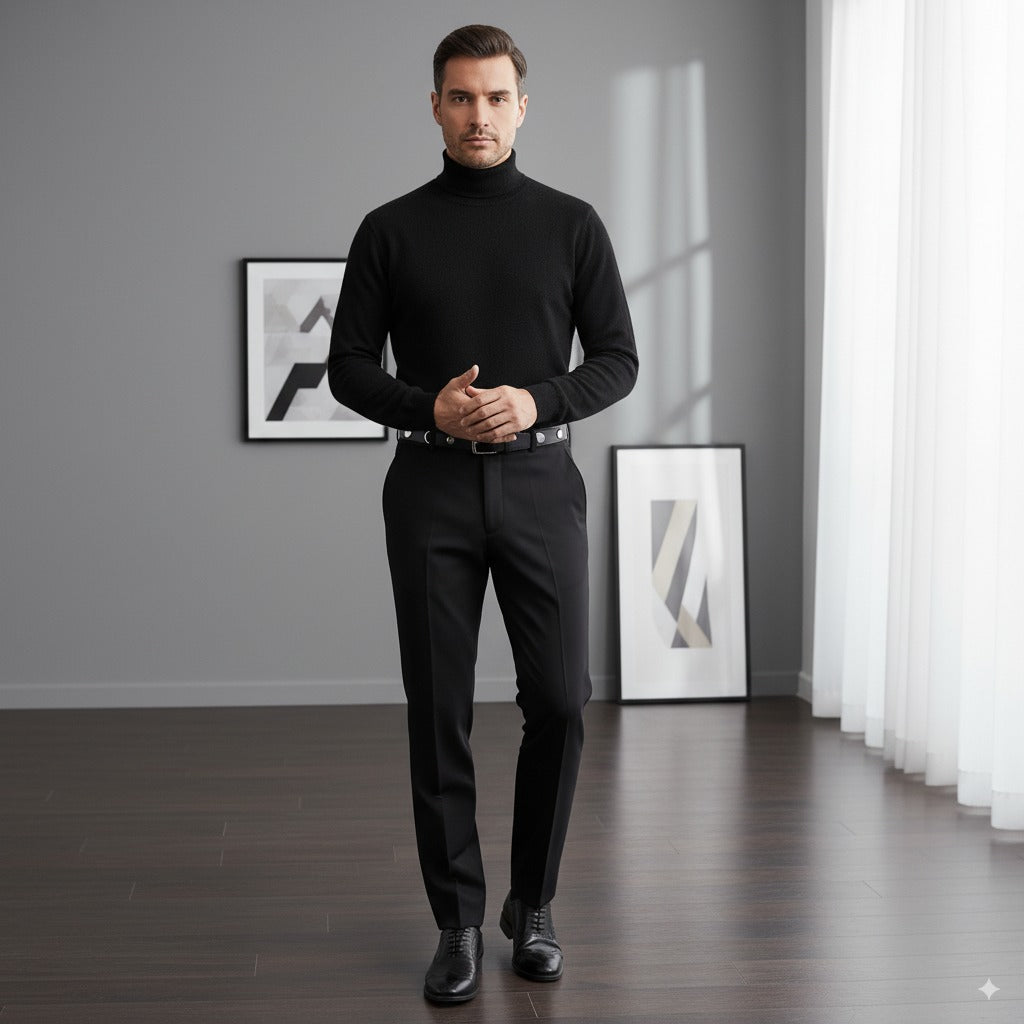 Black Roll Neck 10% Cashmere 90% Wool/ Plain Knit