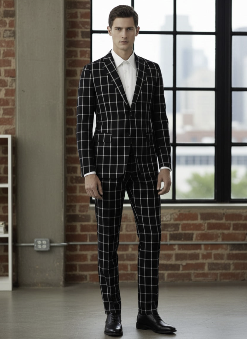Black/ White Check Single Breasted / Two Piece Suit Italian Pure Wool Super 110'S/ 280 grams Style No WL2335114 Perfect for Jackets, Trousers, Waistcoats.