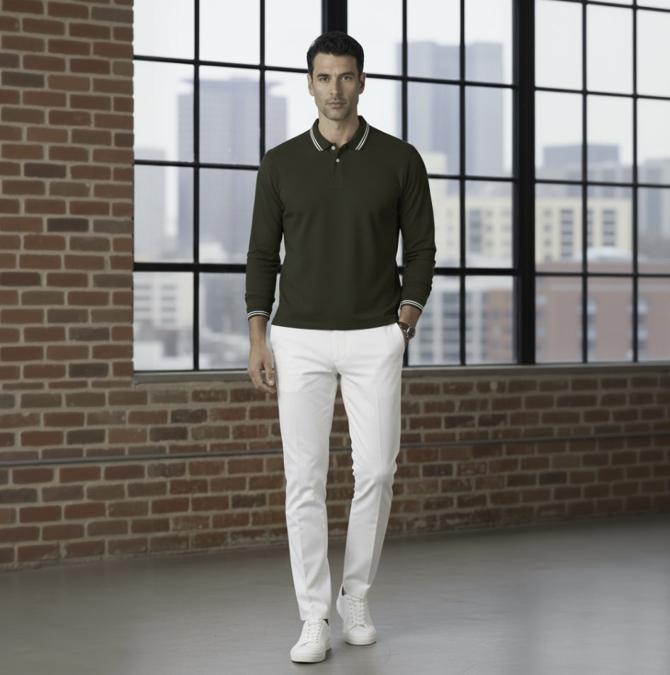Black/White Detail / Bespoke Cotton Long Sleeved Polo Shirt/ 100% Cotton BS-J2023