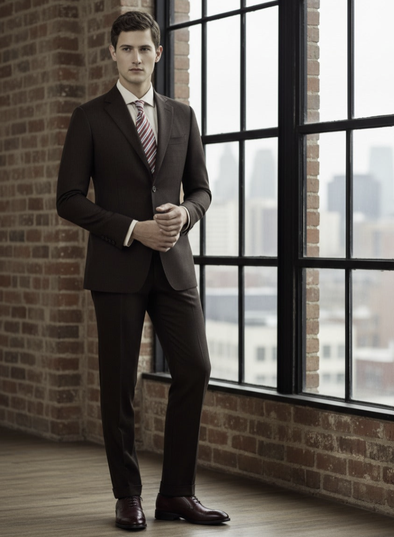 Brown Puppytooth Single Breasted / Two Piece Suit Italian Pure Wool Super 110'S