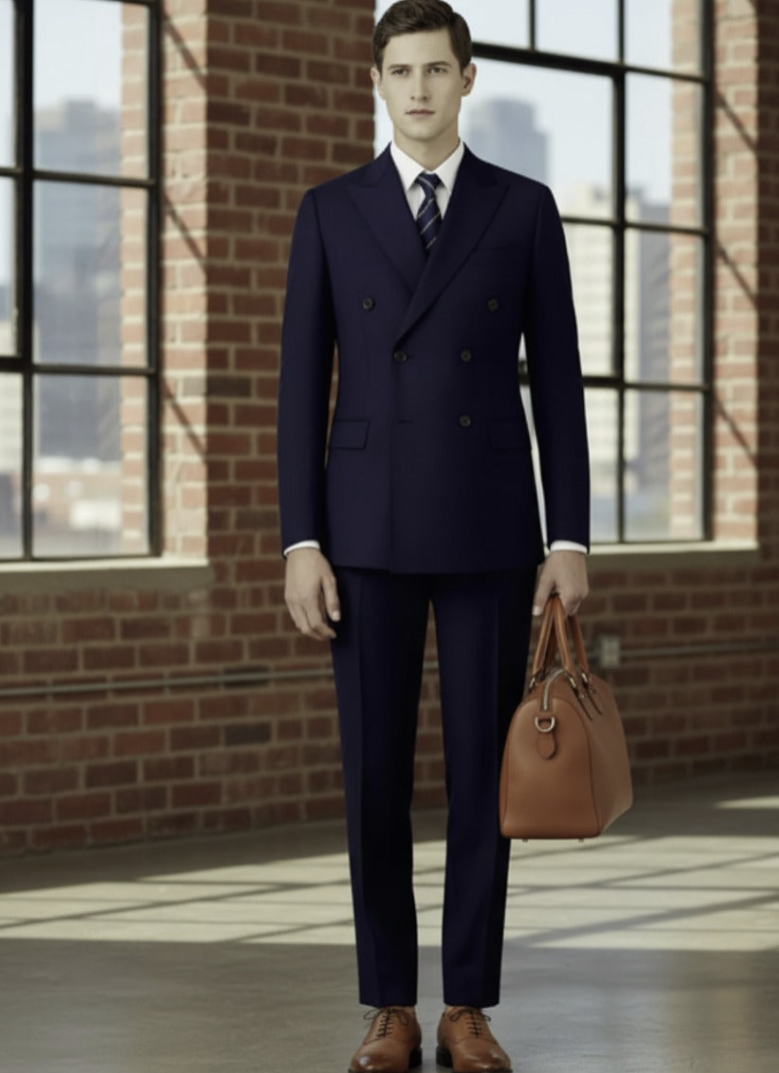 English Double Breasted Pure Wool Dark Blue Super 120's Two Piece Suit