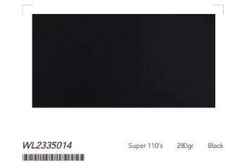 English Pure Wool Black Super 110'S Two Piece Suit /280 grams/ Style No Style No WL2335014 Perfect for Suiting or Jackets, Trousers, Waistcoats.