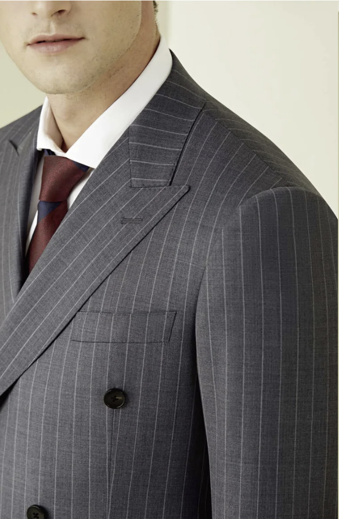 Grey Pinstripe Double Breasted / Two Piece Suit Italian Pure Wool Super 110'S
