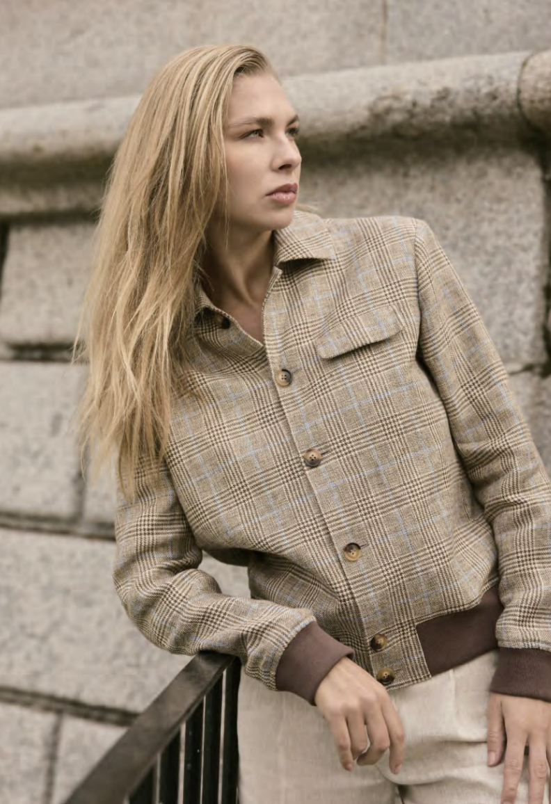 Italian Beige & Blue Check Single Breasted / Women's Two Piece Suit 222 grams/ Style No DBV5611 Perfect for Suiting or Jackets, Trousers, Waistcoats.
