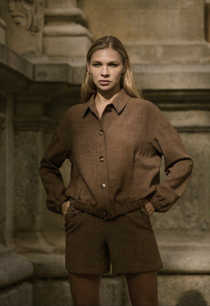 Italian Brown Single Breasted / Women's Two Piece Shorts Suit 182 grams/ Style No DBV5708 Perfect for Suiting or Jackets, Trousers, Waistcoats.