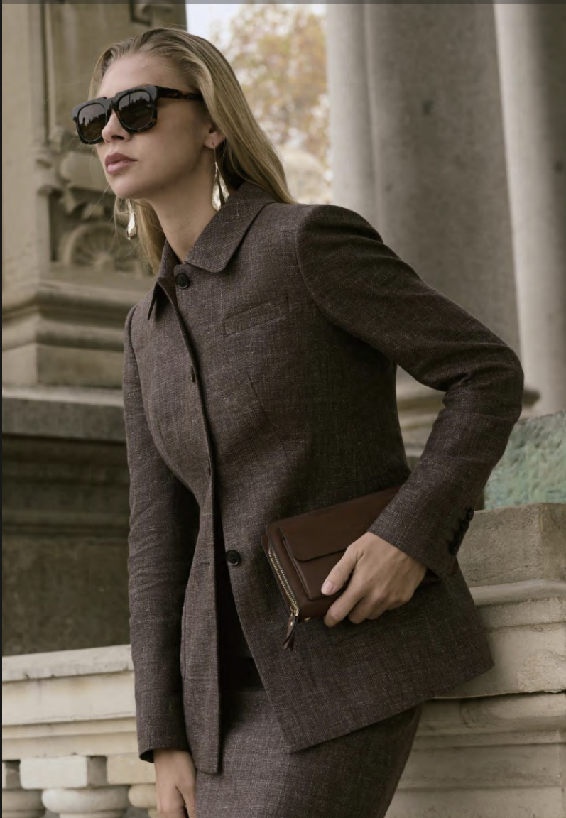 Italian Brown Single Breasted / Women's Two Piece Skirt Suit 170 grams/ Style No DBV5603 Perfect for Suiting or Jackets, Trousers, Waistcoats.