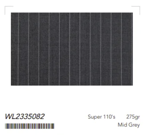 Mid Grey Pinstripe Single Breasted / Three Piece Suit Italian Pure Wool Super 110'S/ 275 grams Style No WL2335082 Perfect for Jackets, Trousers, Waistcoats.
