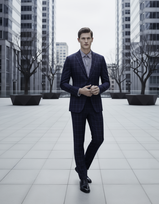 Dark Navy/ Purple Check Single Breasted / Two Piece Suit Italian Pure Wool Super 110'S/ 280 grams Style No WL2335117 Perfect for Jackets, Trousers, Waistcoats.