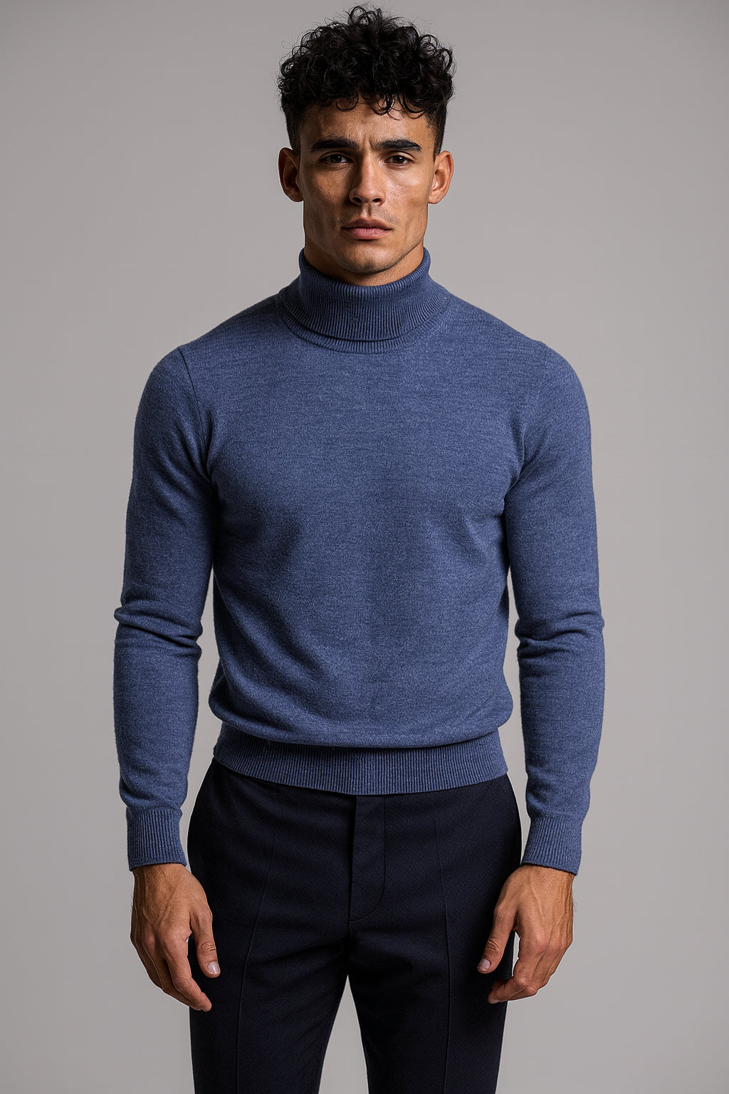 Blue Turtle Neck 10% Cashmere 90% Wool/ Plain Knit
