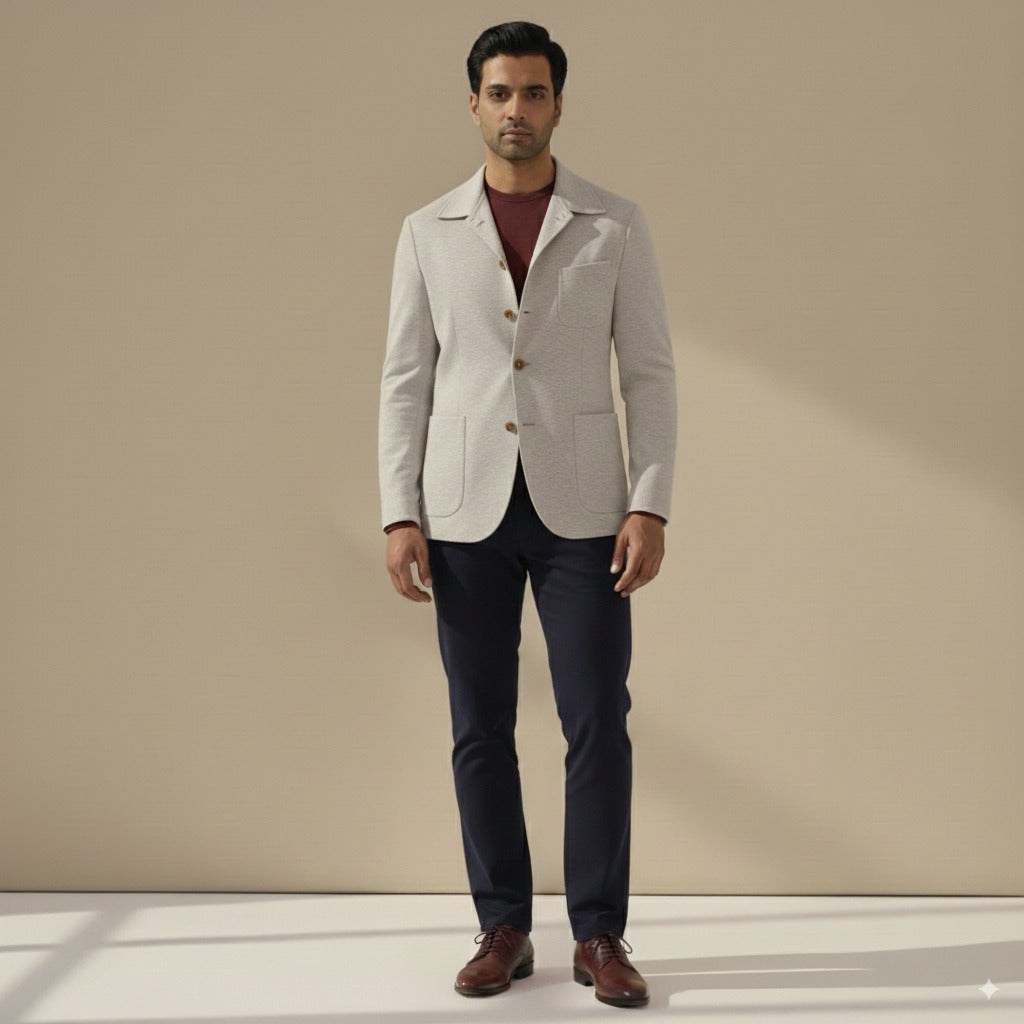 Soft Casual / Knitted Fabric Beige Jacket Style No DBV3125 /185 grams/ Perfect for Jackets, Trousers, Waistcoats.