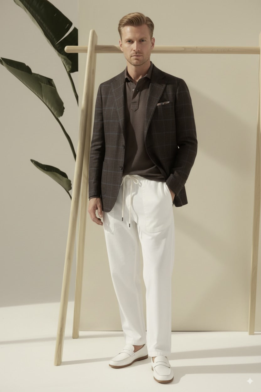 Soft Casual / Wool - Linen Single Breasted Brown Check Jacket Style No DZZ0051