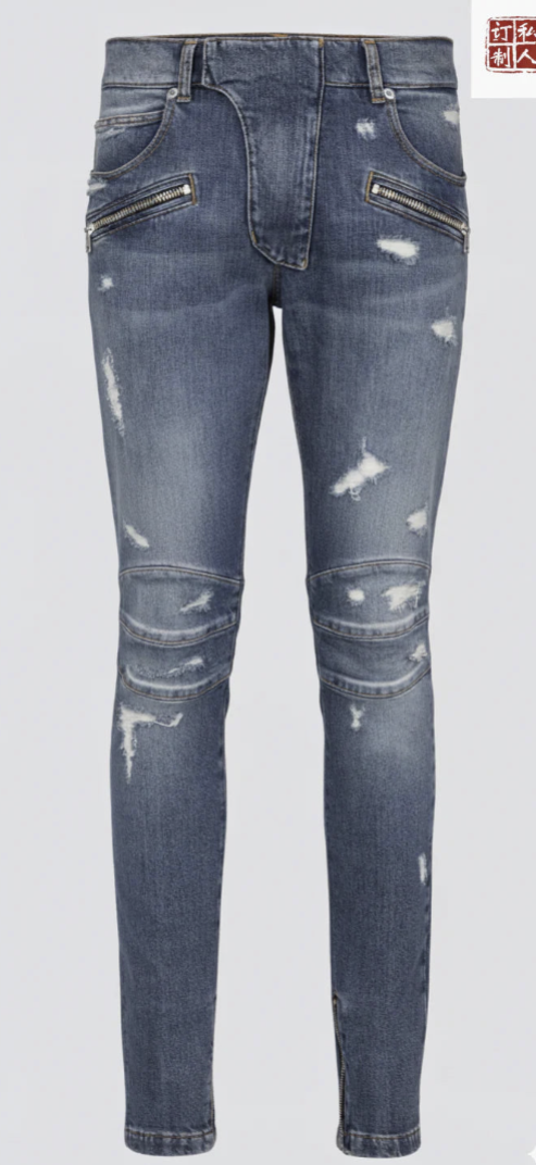Special Edition Japanese Selvedge Fitted Denim Biker Destruction Jeans Medium Blue / 9.25OZ/