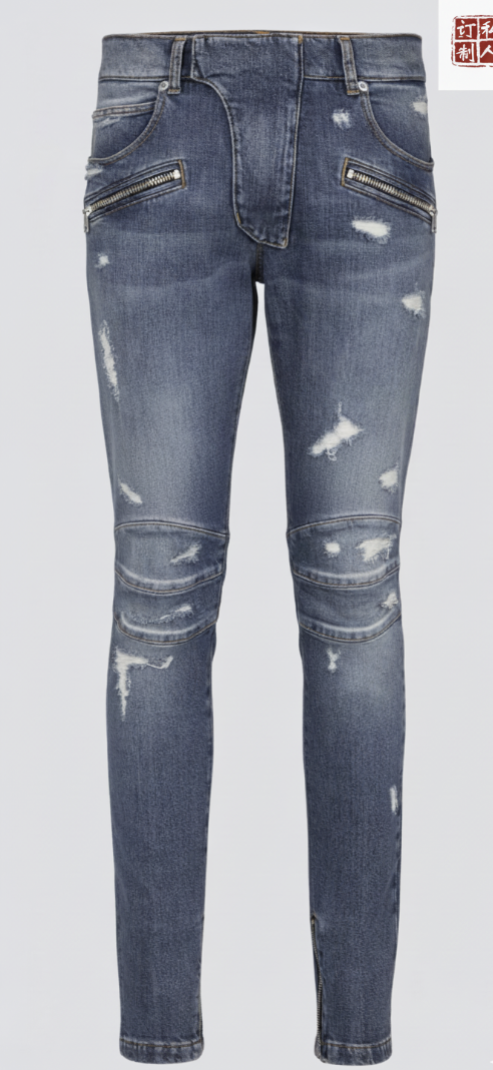 Special Edition Japanese Selvedge Fitted Denim Biker Destruction Jeans Pale Blue