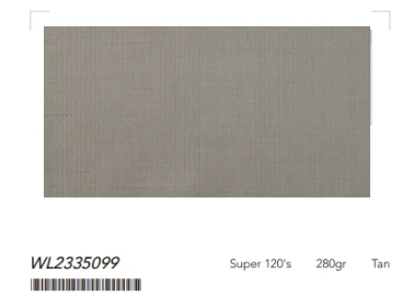 Tan Single Breasted / Two Piece Suit Italian Pure Wool Super 120'S/ 280 grams Style No WL2335099 Perfect for Jackets, Trousers, Waistcoats.