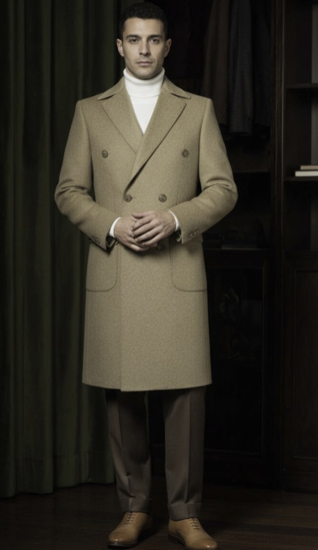 Tan Wool and Cashmere Double Breasted Overcoat Style DBU9075