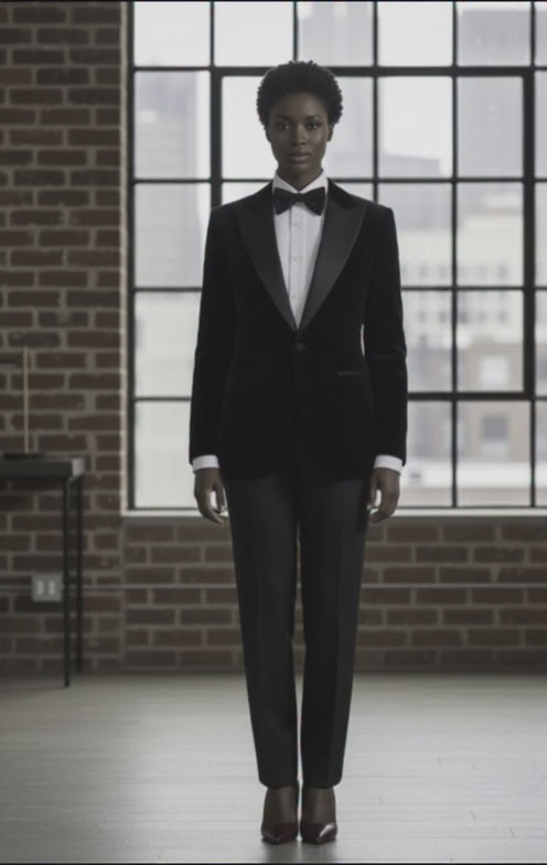 Women's Tuxedo Black Velvet Jacket / (Evening Wear Ceremony Book) 320 grams/ Perfect for Evening Wear, Weddings, Gold Range Made in Italy.