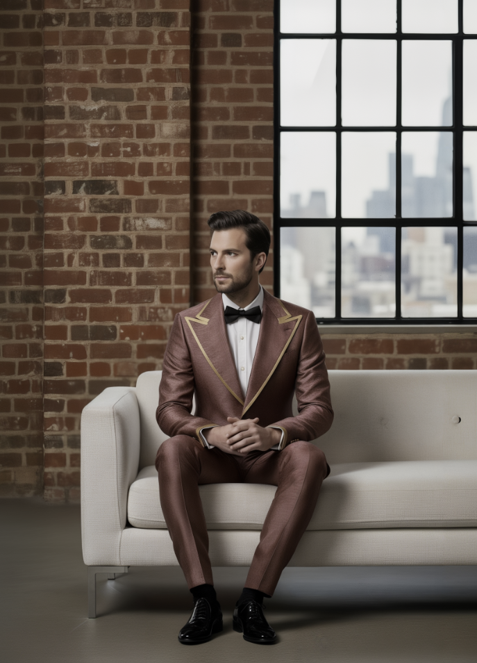 Wide Peaked Style Lapel (Contrasting Gold Satin Edging)