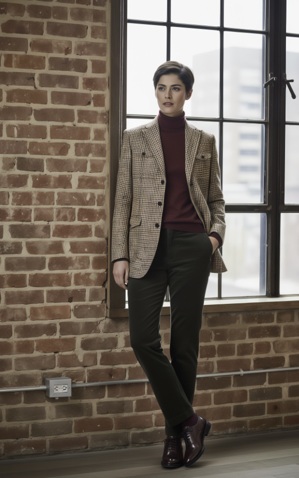 Women's Burgundy/Green Check Tweed Jacket / Dark Green Cord Trousers Style No DAV9905-DJJ0090 / Perfect for Suiting or Jackets, Trousers, Waistcoats. Delivery Once Measured 4-6 weeks.