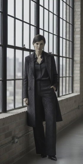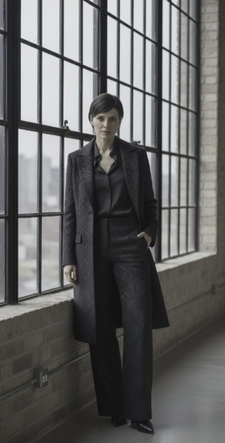 Women's Tuxedo Black Textured Jacquard Long Jacket / (Evening Wear Ceremony Book) 320 grams/ Perfect for Evening Wear, Weddings, Gold Range Cloth Weaved in Italy.