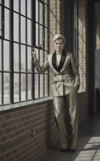 Women's Tuxedo Gold Patterned Brocade Jacket / (Evening Wear Ceremony Book) 320 grams/ Perfect for Evening Wear, Weddings, Gold Range Made in Italy.