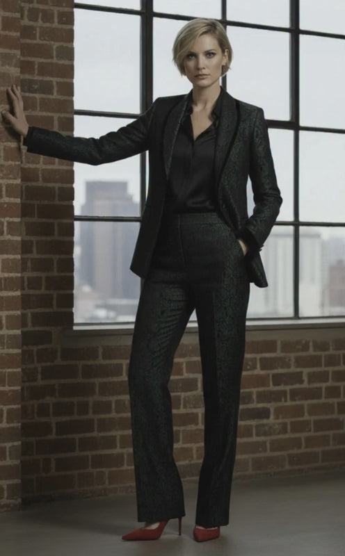 Women's Tuxedo Green and Black Patterned Jacquard Jacket / (Evening Wear Ceremony Book) 320 grams/ Perfect for Evening Wear, Weddings, Gold Range Made in Italy.