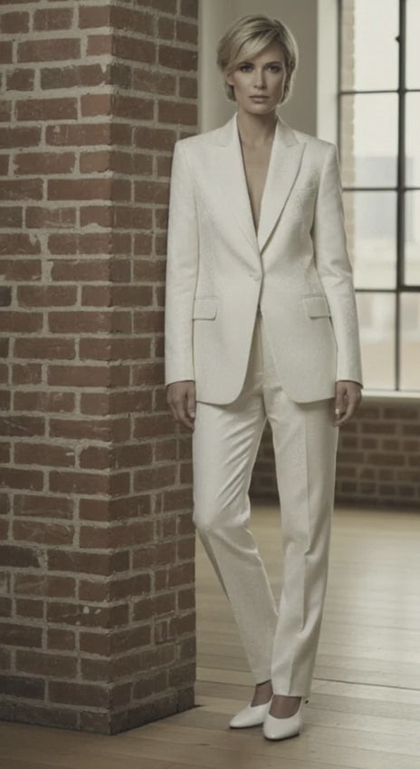 Women's Tuxedo Ivory Textured Jacket, (Evening Wear Ceremony Book) 320 grams/ Perfect for Evening Wear, Weddings, Gold Range Made in Italy.